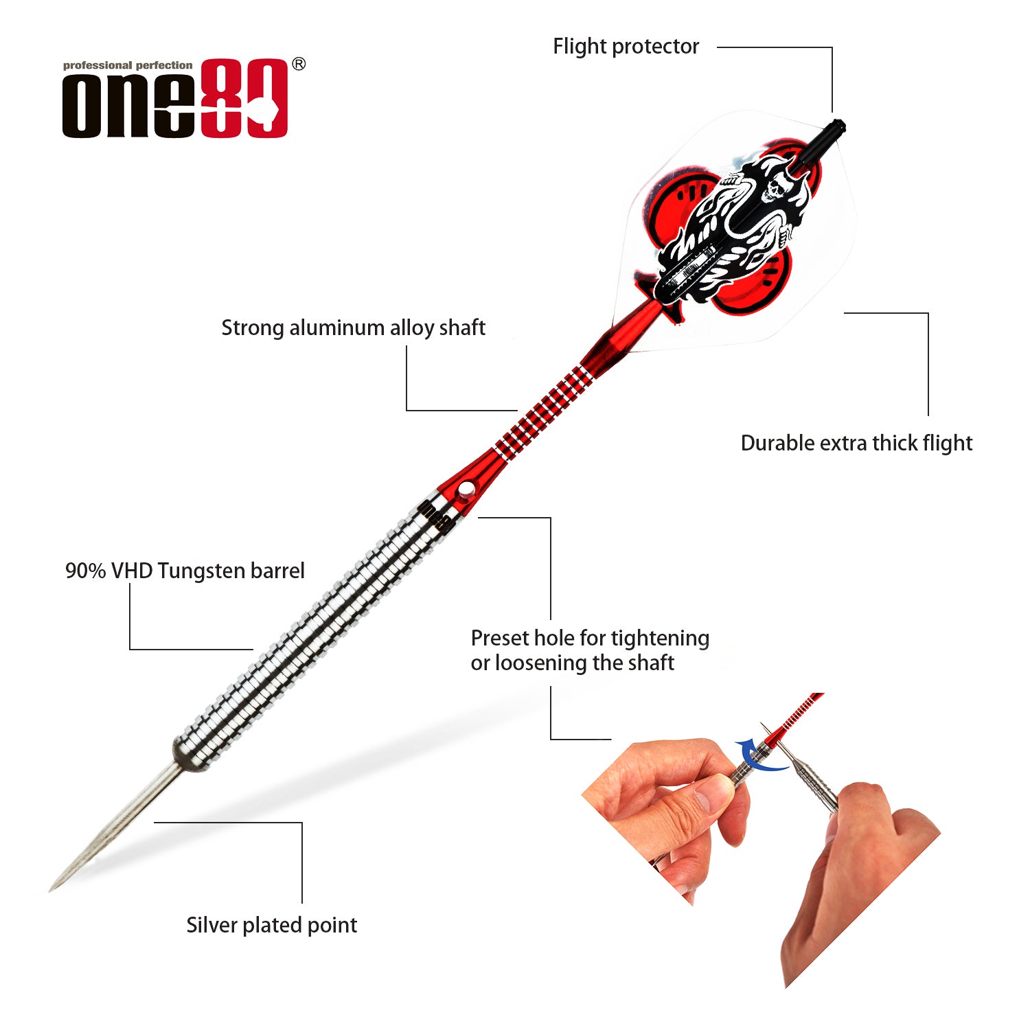 The ONE80 Classic 90% Tungsten Steel Tip Darts are engineered for exceptional accuracy, balance, and durability, making them the perfect choice for competitive players, league matches, and home games. Featuring high-density tungsten barrels, these professional darts offer tight groupings and consistent precision. The ergonomic grip design ensures a comfortable and controlled throw, while the premium flights and shafts provide optimal stability in the air. Whether you're a beginner or a pro, this set delivers professional-grade performance for every dart enthusiast.